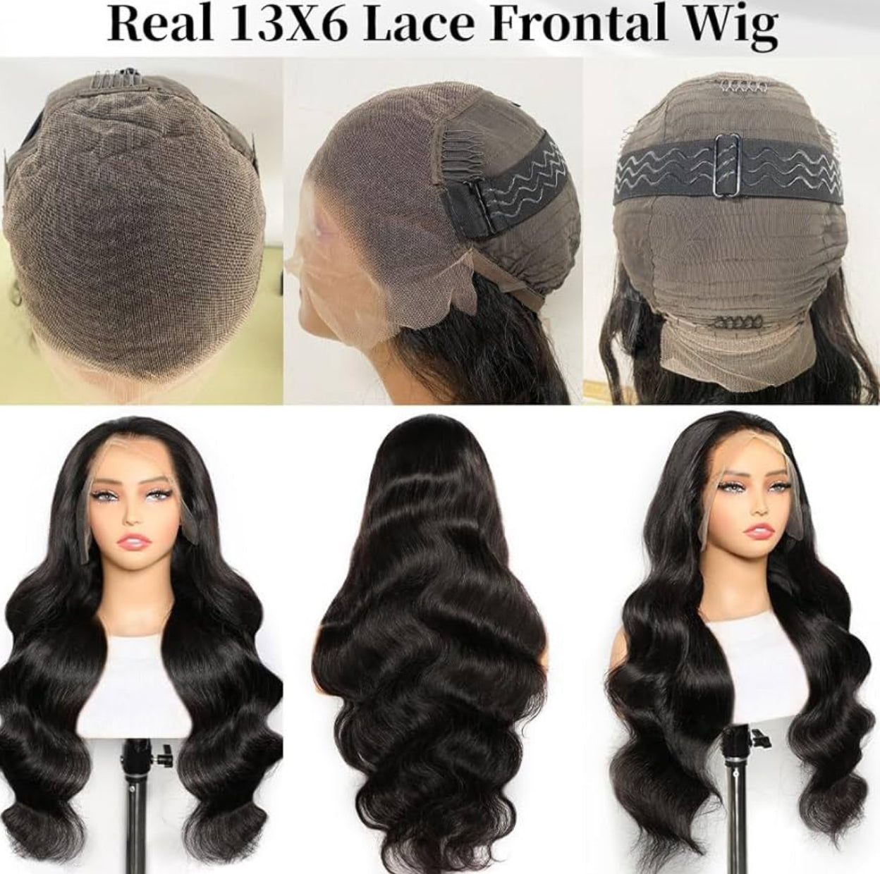 DANOUNOU Wigs Body Wave, 13*6 Lace Transparent, 250% Density/ Natural Color Premium Hair/ 100% Human Hair